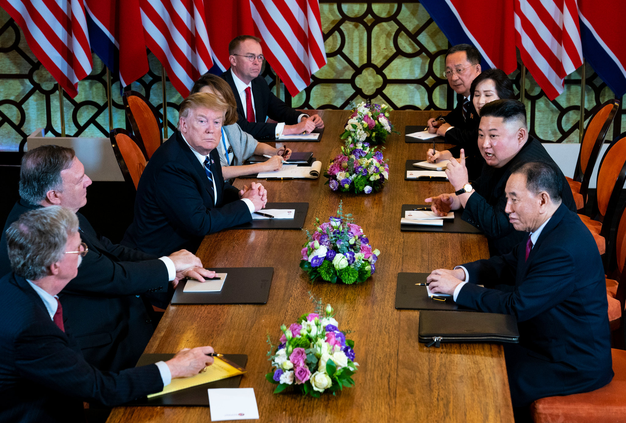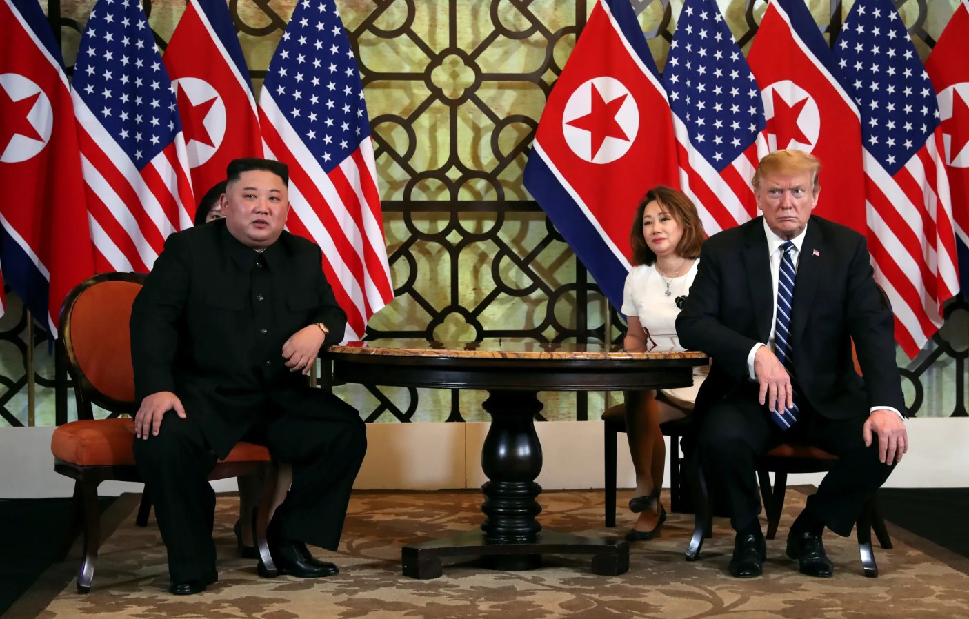 ထရမ့်နှင့် ကင်မ်တို့သည် ၂၀၁၉ ခုနှစ်က ပန်မွန်ဂျွန်ကျေးရွာတွင် တွေ့ဆုံခဲ့ဖူးသည်။