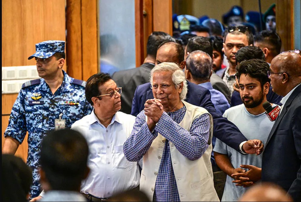 နောက်ကွယ်မှ ကြိုးကိုင်သူမှာ အခြားသူမဟုတ်။ တစ်ချိန်က ငြိမ်းချမ်းရေးနိုဘယ်ဆုရှင်အဖြစ် ချီးကျူးဂုဏ်ပြု ခံခဲ့ရသည့် မိုဟာမက် ယူနွတ် ( Muhammad Yunus) ဖြစ်ပြီး လက်ရှိတွင် အစ္စလာမ်မစ်ယိမ်းသည့် အုပ်ချုပ်ပုံကို ဦးဆောင်နေသူအဖြစ် ဝေဖန်ခံနေရသည်။