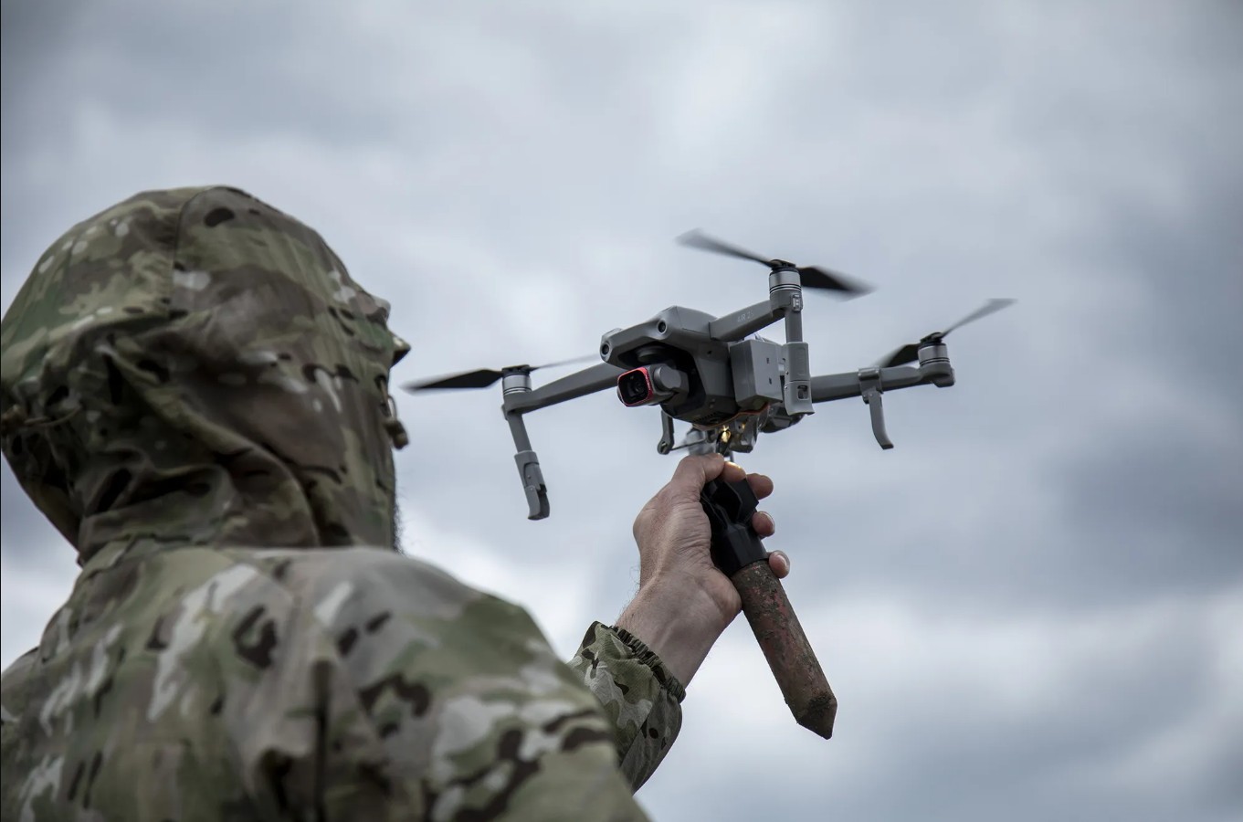 စစ်သားတစ်ဦး ဒရုန်းလွှင့်တင်နေစဉ်
