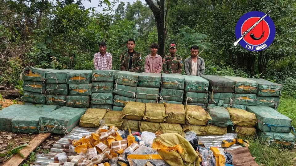 ၂၀၂၅ ခုနှစ်၊ ဇူလိုင်လက NUG လက်အောက်ခံ ယင်းမာပင်ခရိုင် PDF တွေ သယ်လာတဲ့ မူးယစ်ဆေးဝါးတွေ ကို ချင်းလက်နက်ကိုင်အဖွဲ့က ဟားခါးမြို့နယ်ထဲမှာ ဖမ်းမိခဲ့စဉ်