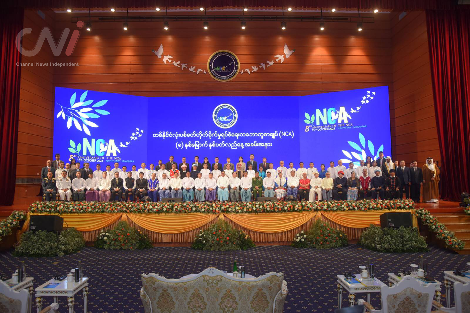 Leaders from ethnic armed groups, the Tatmadaw and the government seen.