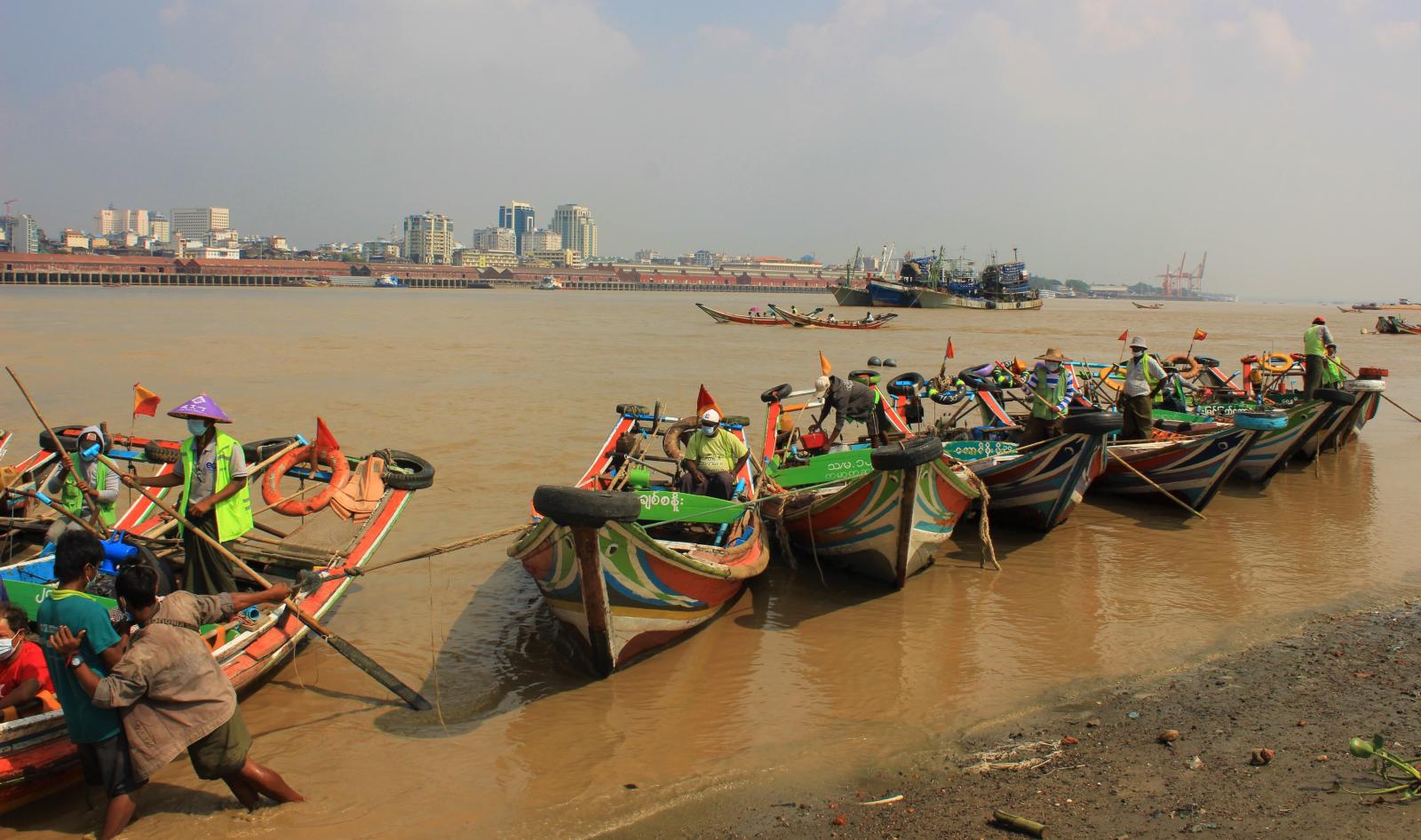 People working for their livelihood by driving motor-boats