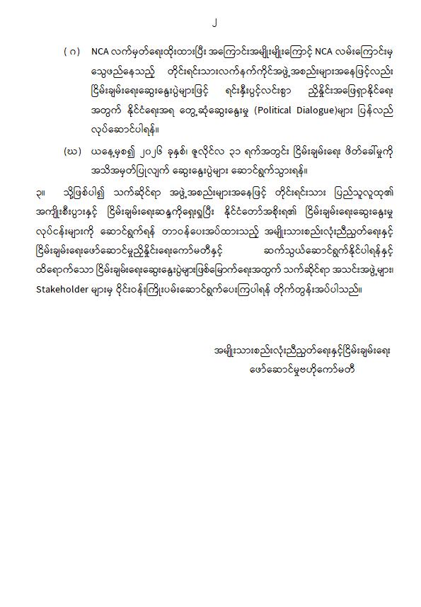 The invitation is addressed to: Armed groups that have signed the Nationwide Ceasefire Agreement (NCA). Armed groups that have not yet signed the NCA. Armed groups that previously signed the NCA but have since withdrawn.