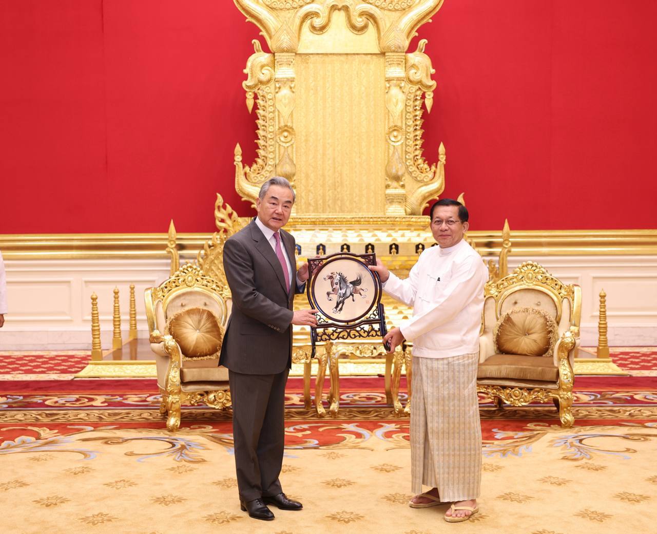 In response, Mr. Wang Yi expressed his belief that under the President’s leadership, Myanmar will become a long-term developing nation. He noted that both countries would accelerate cooperation on matters that benefit the socio-economic lives of their peoples and affirmed that China would continue to stand by and support Myanmar on the international stage.