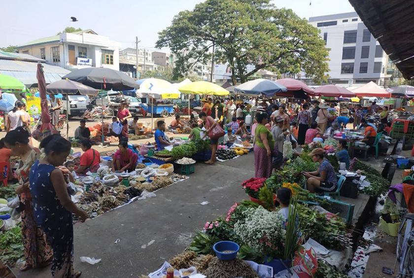 အခြေခံ ကုန်စိမ်းများ ရောင်းချနေကြစဉ်