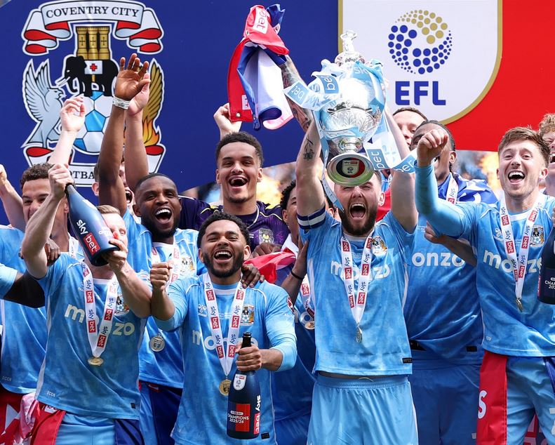 နှစ်ပေါင်း ၂၅ နှစ်ကြာဝေးကွာနေတဲ့ ပရီးမီးယားလိဂ်ထံ တန်းပြန်တက်နိုင်ခဲ့တဲ့ ကိုဗင်ထရီအသင်းဟာ ဝက်စ်ဟမ်း အသင်းကို ၃ ဂိုး-၁ ဂိုးနဲ့ အနိုင်ရခဲ့တဲ့ပွဲအပြီး အိမ်ရှင်ပရိသတ်တွေအရှေ့မှာ ဆုဖလားနဲ့ အောင်ပွဲခံခဲ့ကြပါတယ်။