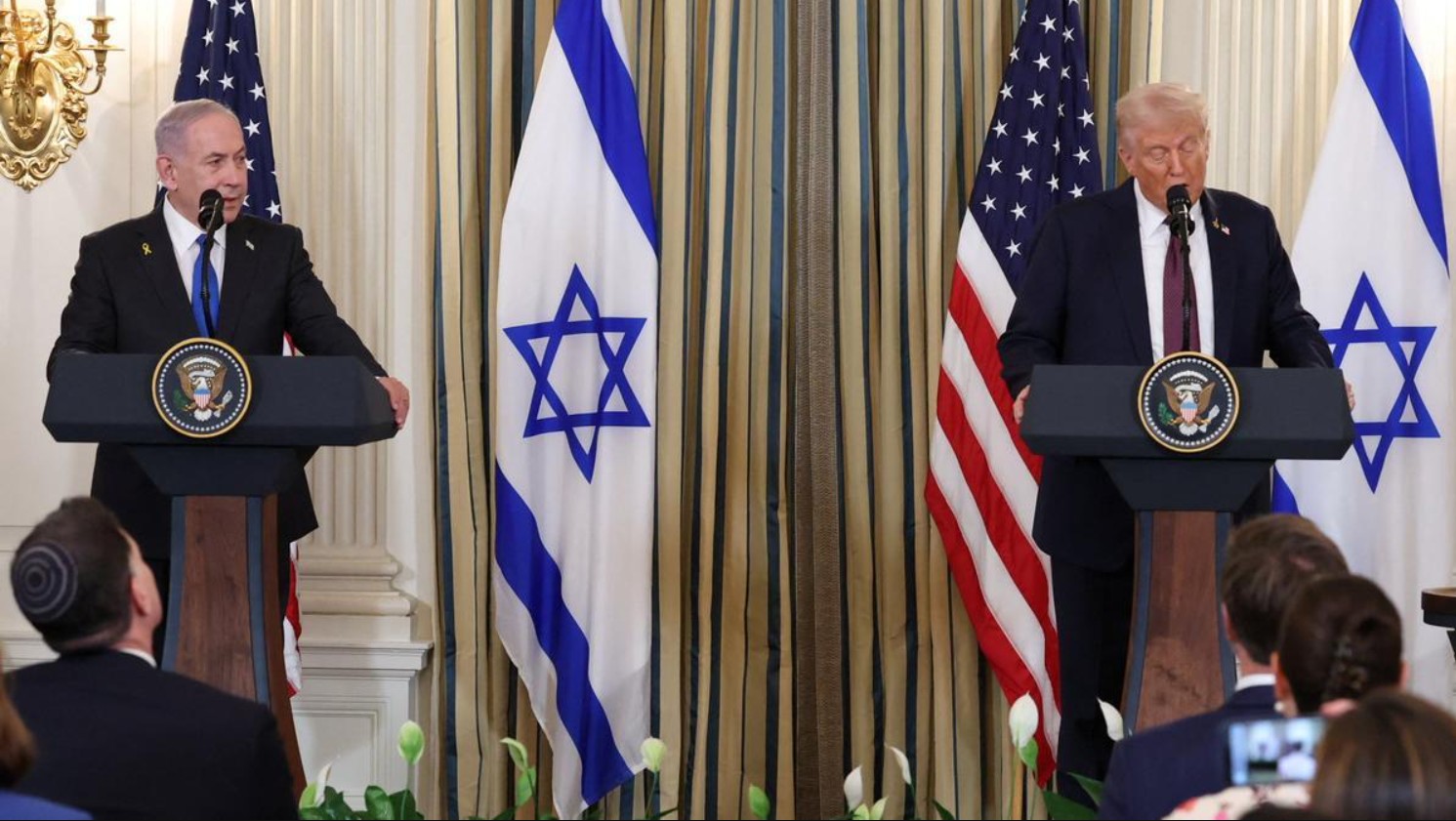 အစ္စရေး ဝန်ကြီးချုပ် နေတန်ယာဟုနဲ့ အမေရိကန်သမ္မတ ဒေါ်နယ်ထရမ့်ကို တွေ့ရစဉ်