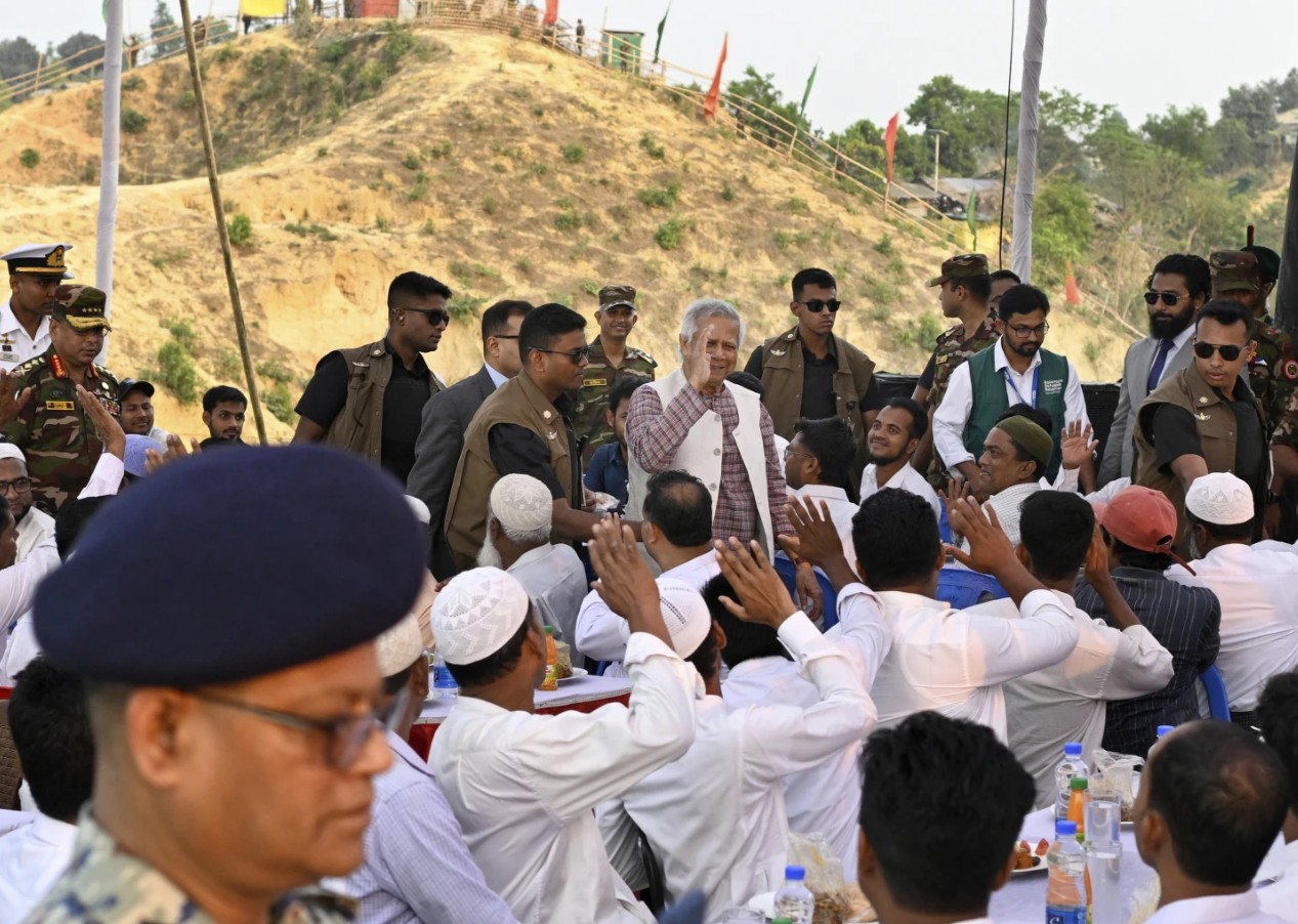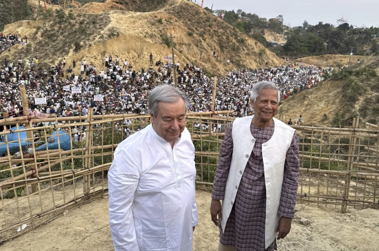 ဘင်္ဂလားဒေ့ရှ်အစိုးရ အကြီးအကဲ ယူနွတ်နဲ့ ဘင်္ဂါလီ ဒုက္ခသည်တွေကို တွေ့ရစဉ်