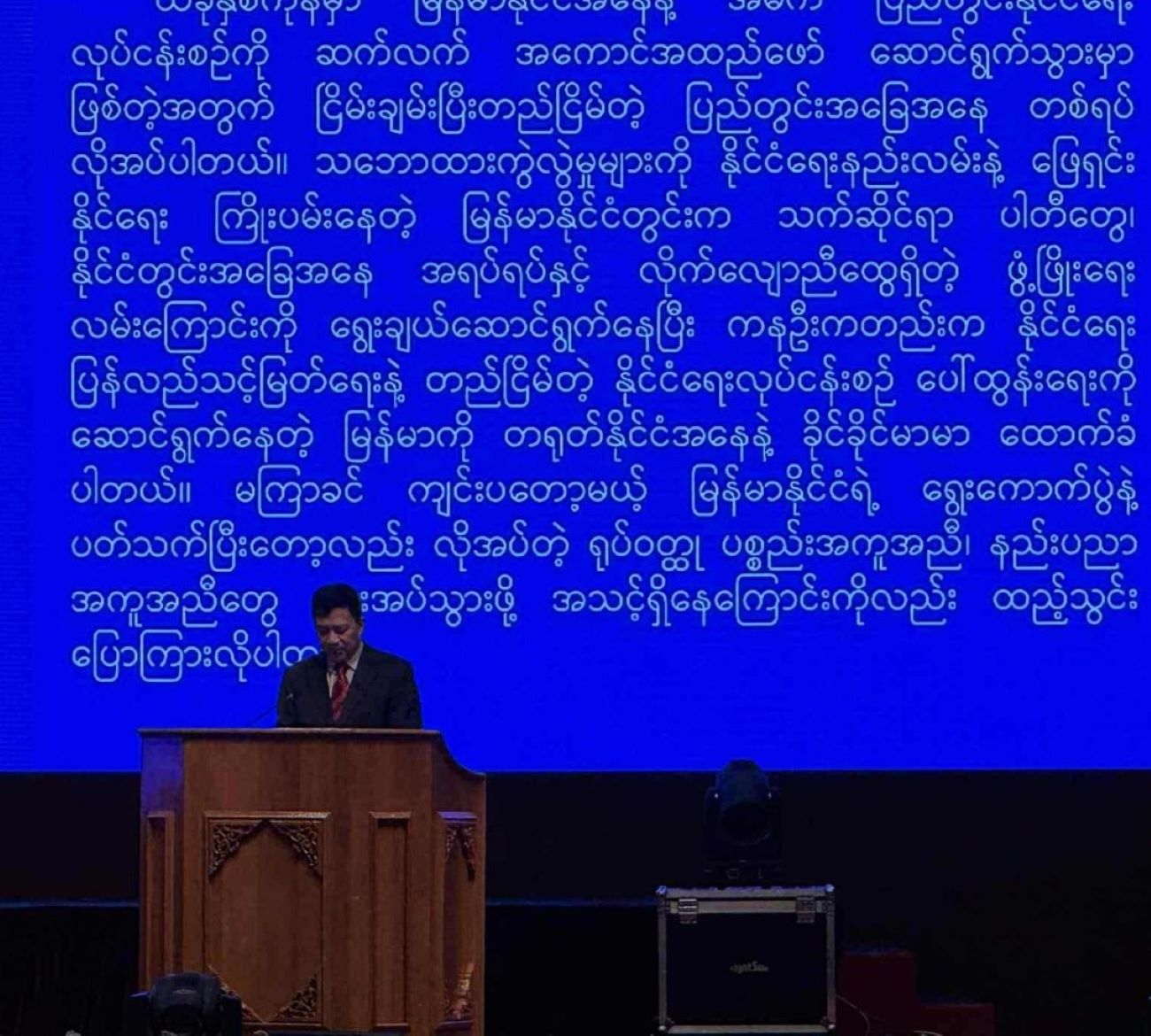 ၂၀၂၅ ခုနှစ်၊ အောက်တိုဘာ ၁၅ ရက်က နေပြည်တော်တွင် ကျင်းပသည့် တစ်နိုင်ငံလုံး ပစ်ခတ်တိုက်ခိုက်မှု ရပ်စဲရေး သဘောတူစာချုပ်(NCA) လက်မှတ်ထိုးခြင်း (၁၀)နှစ်ပြည့် အခမ်းအနား၌ မိန့်ခွန်းပြောကြားစဥ် ၎င်းက ပြောကြားခဲ့ခြင်း ဖြစ်သည်။