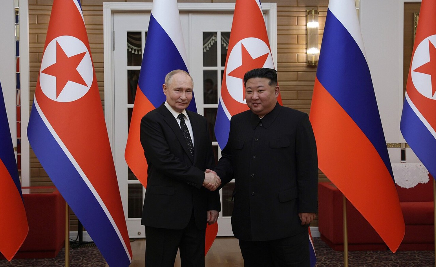 ရုရှားသမ္မတ ပူတင်နဲ့ ကင်မ်ဂျုံအန်ကို တွေ့ရစဉ်