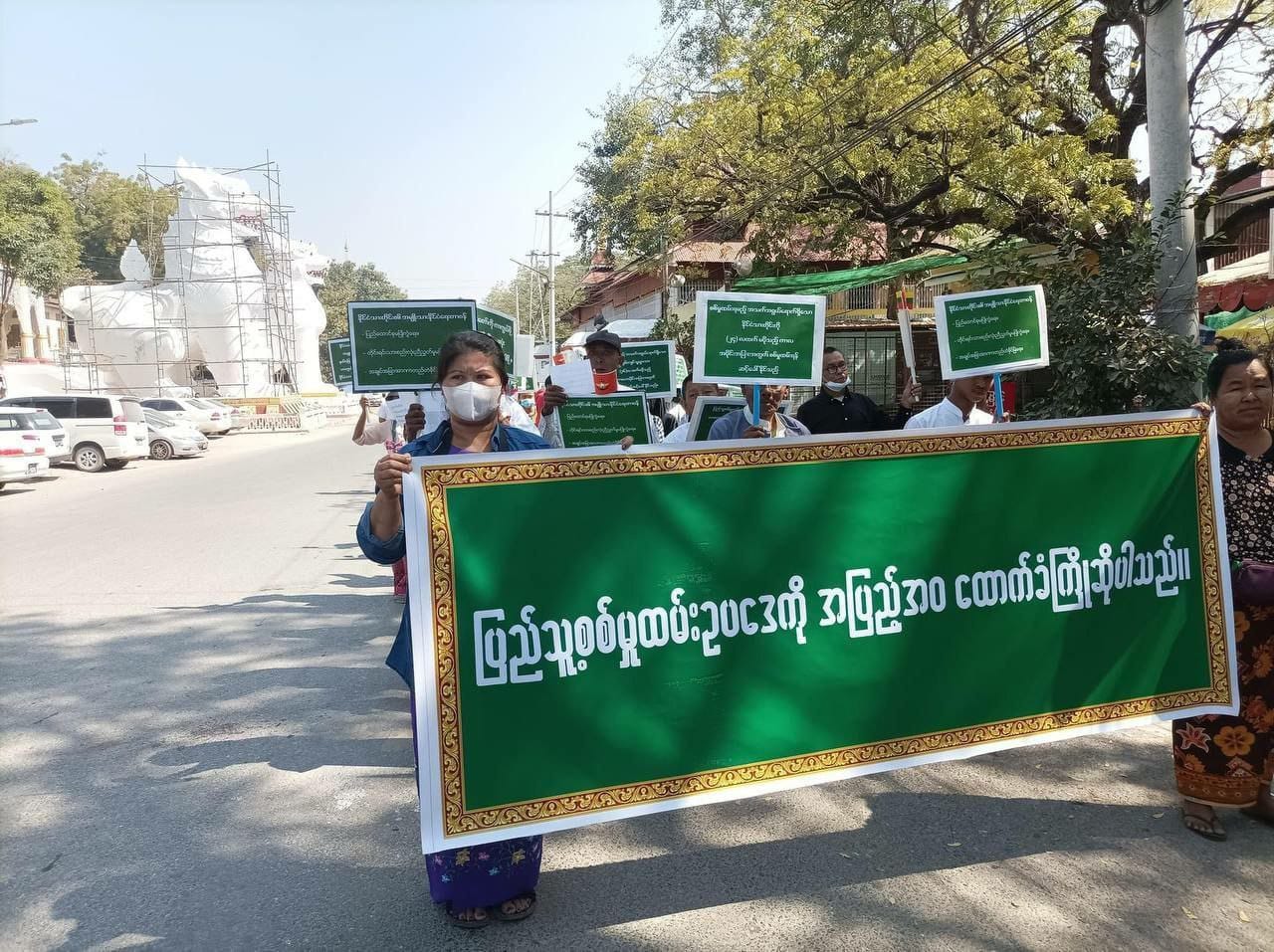 စစ်မှုထမ်းဥပဒေကို ထောက်ခံကြသူများကို တွေ့ရစဉ်