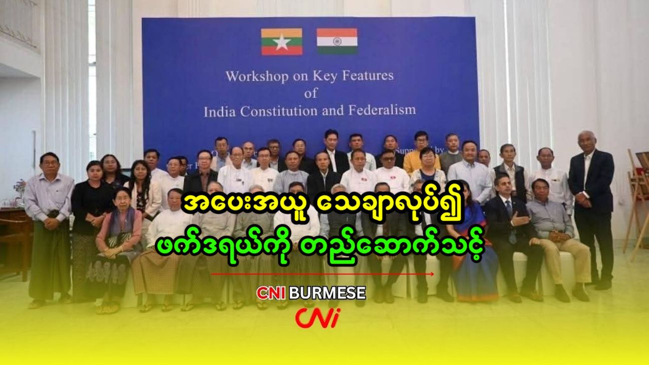 အိန္ဒိယသံရုံးက ကျင်းပသည့် ဖက်ဒရယ်ရေးရာ အလုပ်ရုံဆွေးနွေးပွဲ တက်ရောက်ခဲ့သူများကို တွေ့ရစဉ်