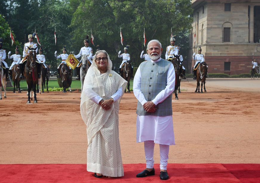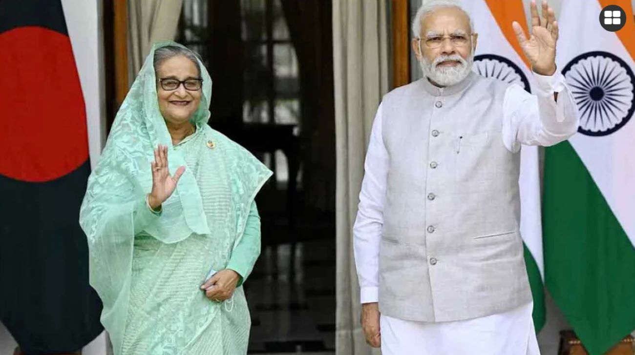 ဘင်္ဂလားဒေ့ရှ်ဝန်ကြီးချုပ်ဟောင်း ရှိတ်ဟာစီနာနဲ့ အိန္ဒိယဝန်ကြီးချုပ် မိုဒီကို တွေ့ရစဉ်