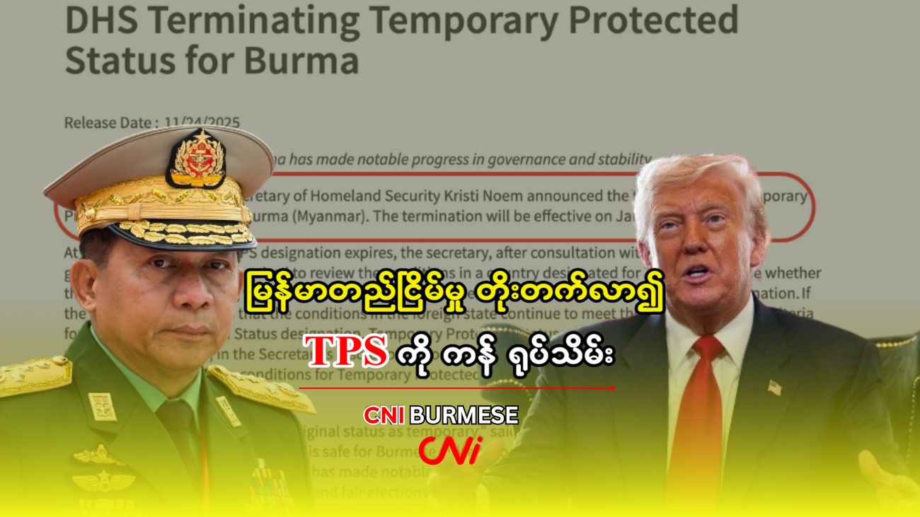 မြန်မာနိုင်ငံတွင် အုပ်ချုပ်ရေးနှင့် တည်ငြိမ်ရေး၌ ထူးခြားသော တိုးတက်မှုများ ရှိလာပြီးဖြစ်၍ အမေရိကန်မှာ မြန်မာများအတွက် ယာယီအကာအကွယ်ပေးထားသည့် ခိုလှုံခွင့်(Temporary Protected Status-TPS)ကို ရပ်စဲ ကြောင်း အမေရိကန်ပြည်ထောင်စု အမိမြေလုံခြုံရေးဌာနက ၂၀၂၅ ခုနှစ်၊ နိုဝင်ဘာ ၂၅ ရက်တွင် ထုတ်ပြန် ကြေ ညာခဲ့သည်။