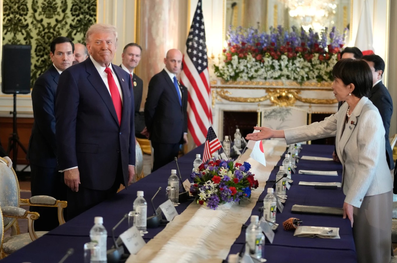 ဂျပန်ဝန်ကြီးချုပ် ဆာနာအဲ တာကာအီချီနဲ့ အမေရိကန်သမ္မတ ဒေါ်နယ်ထရမ့်ကိုတွေ့ရစဉ်