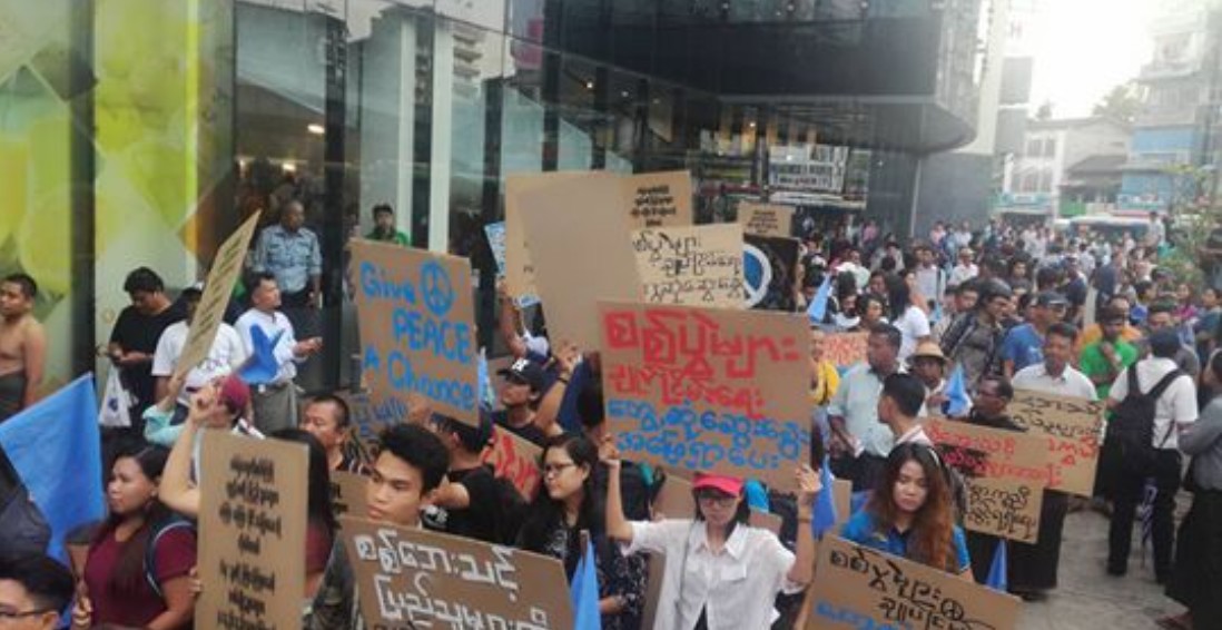 စစ်ပွဲများ ရပ်တန့်ရေး ဆန္ဒပြတောင်းဆိုနေကြစဉ်