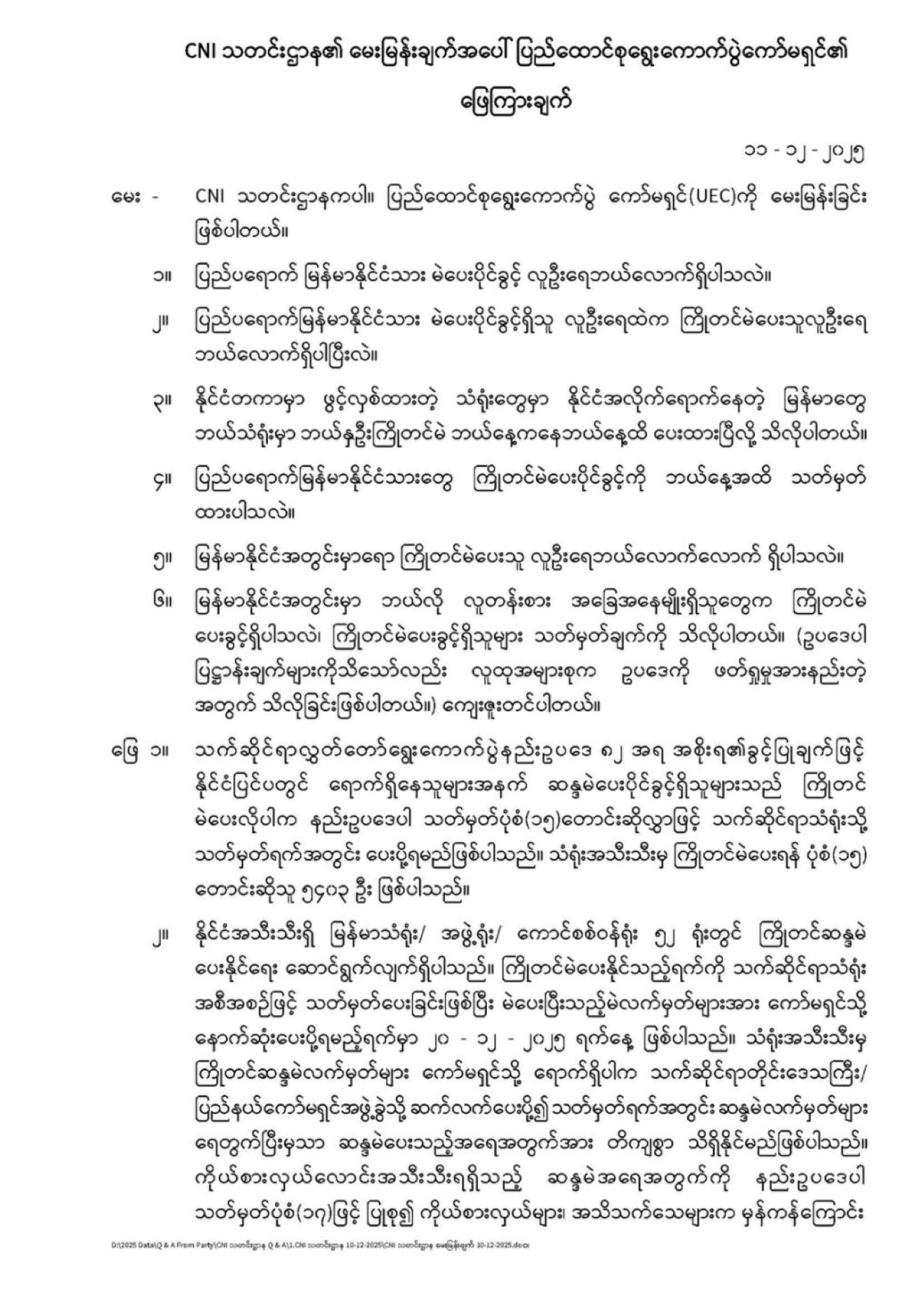 နိုင်ငံတကာရောက် မြန်မာနိုင်ငံသားများ လာမည့် ရွေးကောက်ပွဲနှင့် ပတ်သက်ပြီး ကြိုတင်မဲပေးမှု မည်သည့် အခြေအနေရှိသလဲ ဆိုသည့်အပေါ် ပြည်ထောင်စုရွေးကောက်ပွဲကော်မရှင်(UEC)က အောက်ပါအတိုင်း CNI သတင်းဌာနသို့ ပြန်လည် ဖြေကြားခဲ့သည်။