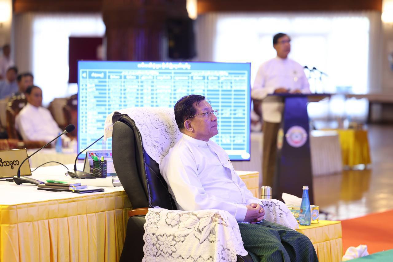 သတင်းမီဒီယာကောင်စီ အခမ်းအနားမှာ ဗိုလ်ချုပ်မှူးကြီးမင်းအောင်လှိုင်ကို တွေ့ရစဉ်