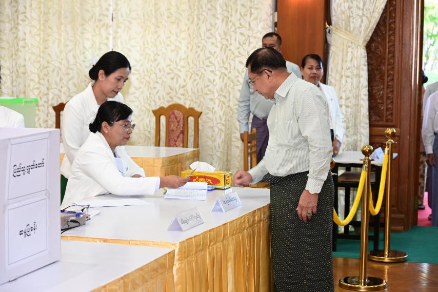 ၂၀၂၅ ခုနှစ်၊ ဒီဇင်ဘာ ၂၈ ရက်တွင် စတင် ကျင်းပနေသည့် အထွေထွေရွေးကောက်ပွဲကို ဗိုလ်ချုပ်မှူးကြီးမင်းအောင်လှိုင် အပါအဝင် စစ်ဘက်ဆိုင်ရာ ခေါင်းဆောင်များ မဲလာရောက် ပေးခဲ့ကြသည်။