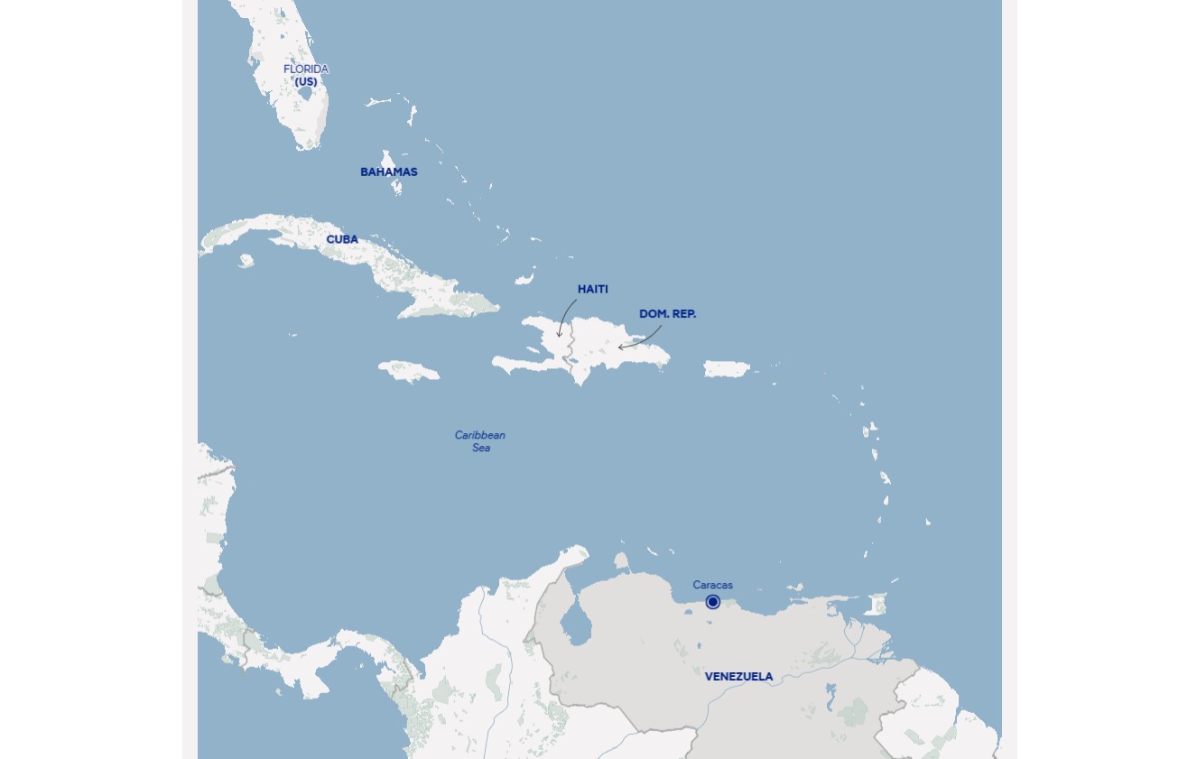 ဗင်နီဇွဲလားကာရေဘီယံပင်လယ်ပြင်ကိုတွေ့ရစဉ်