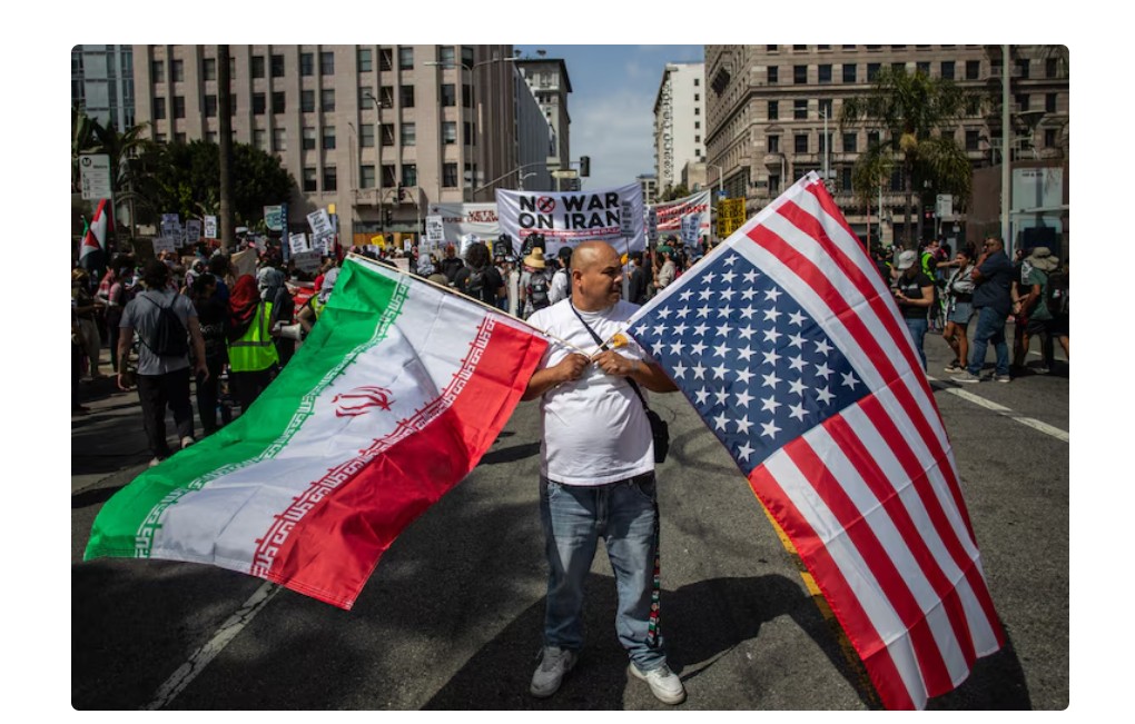 အမေရိကန်အလံကိုင်ထားတဲ့ အီရန် ဆန္ဒပြသူတစ်ဦးကိုတွေ့ရစဉ်