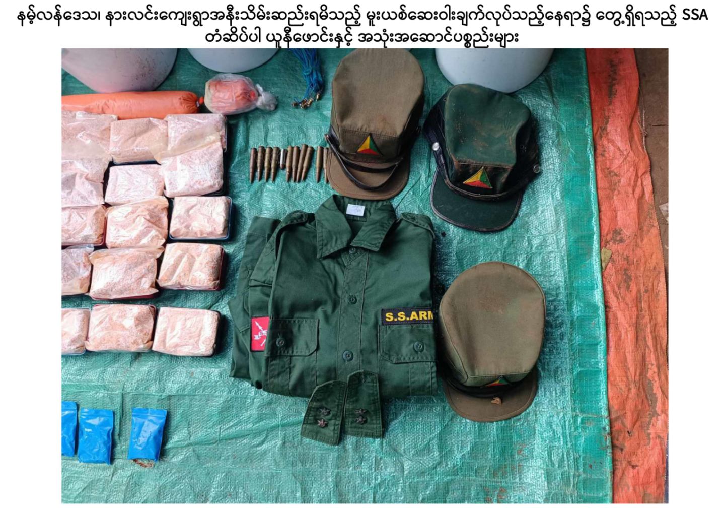 ထိုနေ့ ညနေ ၄ နာရီကျော်တွင် အဆိုပါ နေရာ၏ အရှေ့ဘက် မီတာ ၈၀၀ ခန့်အကွာတွင် ကွန်ပျူတာ(Laptop) ၁၁ လုံးနှင့် ကွန်ပျူတာ(Desktop) ၆ လုံး၊ Star Link ၃ လုံး၊ မူးယစ်ဆေးဝါးချက်လုပ်ရာတွင် အသုံးပြုသည့် ဆေးပြား ရိုက်စက် ၂ လုံး၊ ဆေးမွှေစက် ၁ လုံး၊ ဆေးပြားရေတွက်စက် ၁ လုံး၊ အိုက်စ် ၂ ကီလိုဂရမ်၊ ဆေးပြားရိုက်ရန် ရောစပ် ထားသည့် အနှစ် ၁၀ ကီလိုဂရမ်ပါ ပုံး ၁ ပုံး၊ Caustic Soda ၂၅ ကီလိုဂရမ်၊ Sodium Poweder ၂၅ ကီလိုဂရမ်ပါ ၃၀ လုံး၊ မော်တော်ယာဉ် ၁ စီး၊ မီးစက် ၂ လုံး၊ ဘက်ဟိုး ၁ စီး၊ SSA တံဆပ်ပါ အစိမ်းရောင် ယူနီဖောင်း ၁ စုံ၊ အပွင့် ၂ ပွင့်ပါ ပုခုံးတံဆိပ် ၁ စုံ၊ SSA တံဆိပ်ပါ အစိမ်းရောင် ဦးထုပ် ၁ လုံး၊ အဆောက်အအုံများနှင့် ဆက်စပ် ပစ္စည်းများ ကို ထပ်မံ သိမ်းဆည်းရမိခဲ့သည်ဟု နေပြည်တော်က ထုတ်ပြန်ခဲ့သည်။