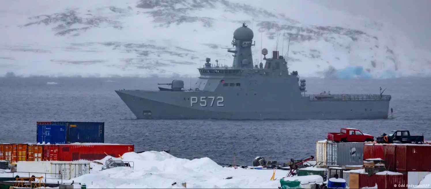 ဂရင်းလန်းကျွန်း လုံခြုံရေး ဆောင်ရွက်နေတဲ့ စစ်သင်္ဘောတစ်စင်းကို တွေ့ရစဉ်