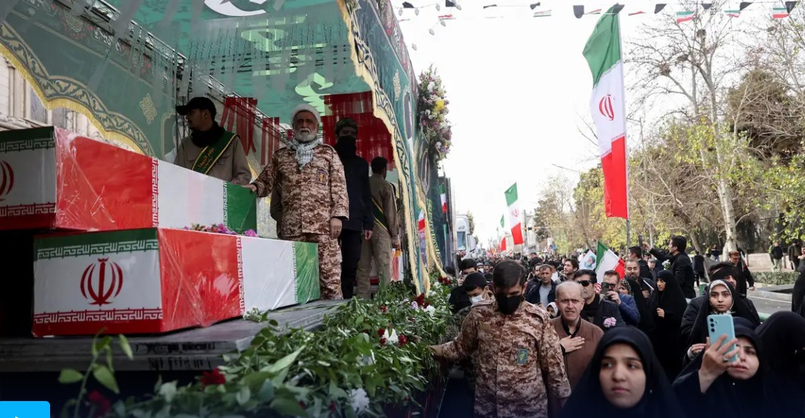 အီရန်ဆန္ဒပြသူများ သေဆုံးသွားသူများကို တွေ့ရစဉ်