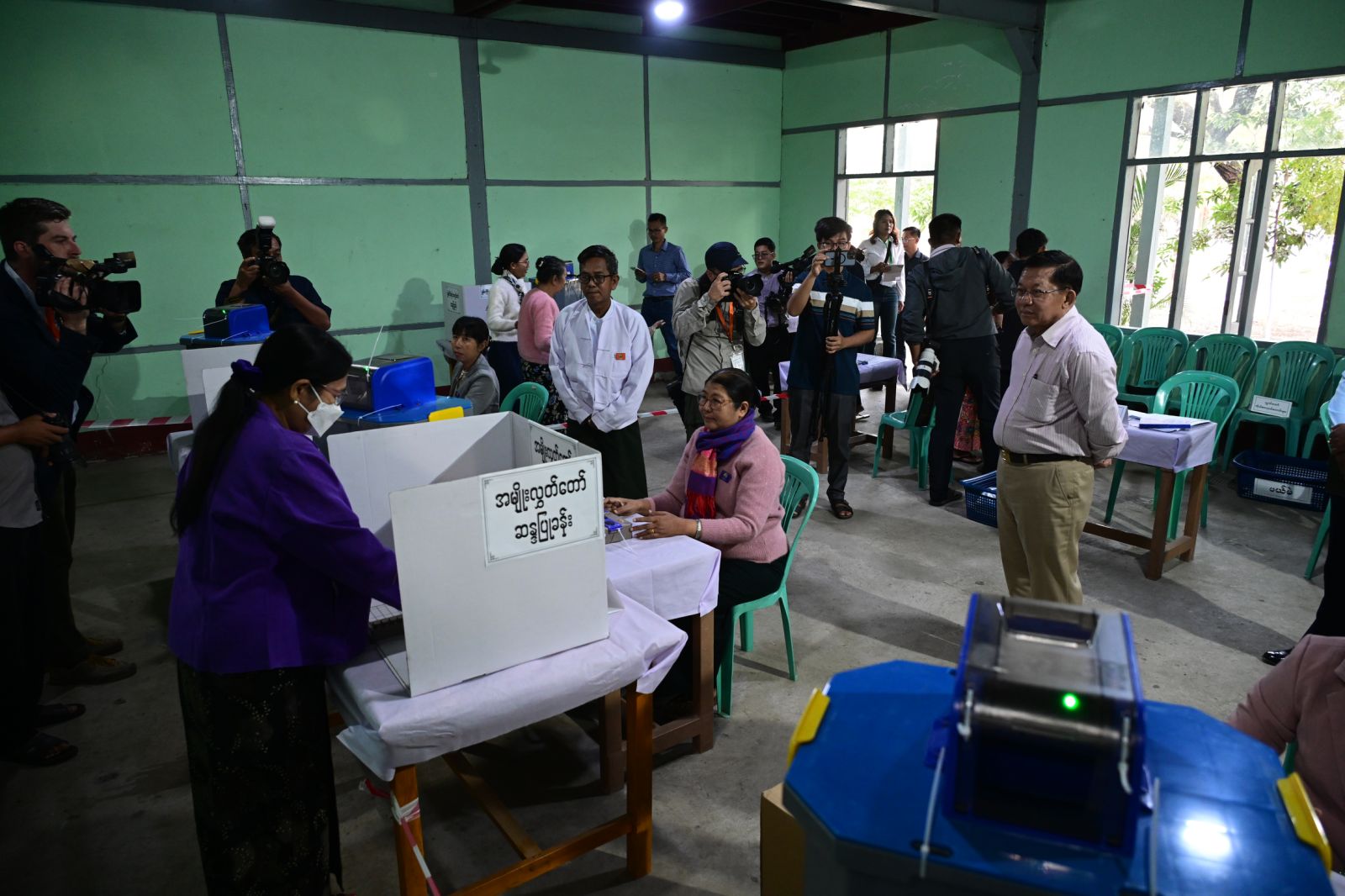 ပြည်သူ့ပါတီဥက္ကဋ္ဌ ဦးကိုကိုကြီး မဲပေးခဲ့စဉ်