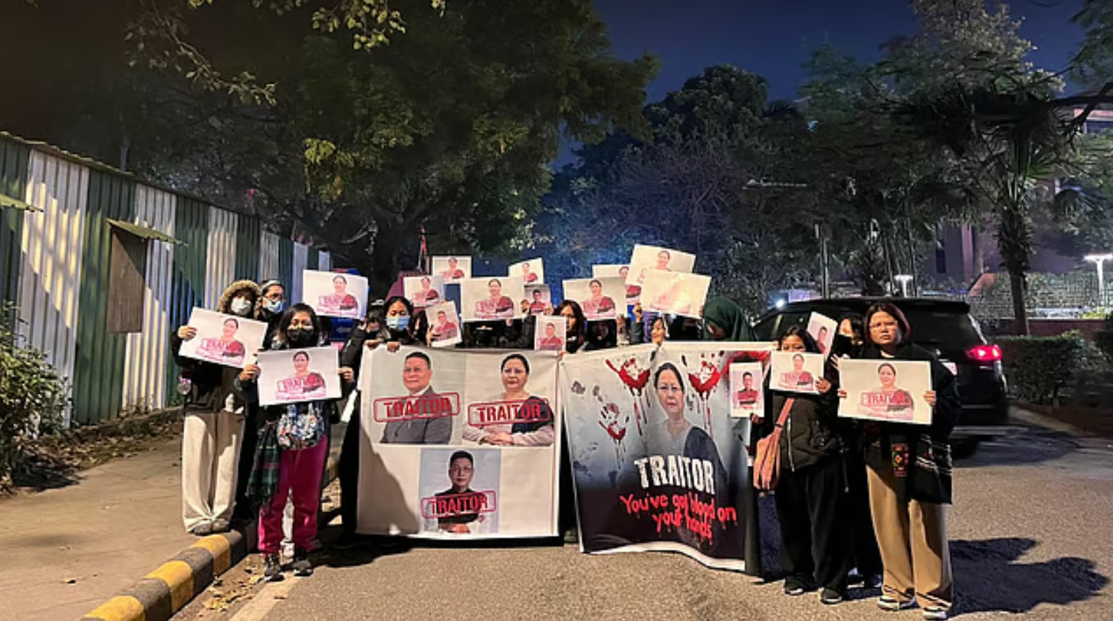 ဆန္ဒပြသူများသည် ကူကီး-ဇို လူမျိုးများဖြစ်သည့် ဒုတိယဝန်ကြီးချုပ် မစ္စမ်နမ်ချာ ကစ်ပ်ဂျန်(Nemcha Kipgen) နှင့် အခြားသော လွှတ်တော်ကိုယ်စားလှယ် ၂ ဦးဖြစ်သည့် အယ်လ်အမ် ခေါ့တေး(LM Khaute) နှင့် အန် ဆားနတေး( N Sanate) တို့၏ ပုံတူရုပ်များကို မီးရှို့ဆန္ဒပြခဲ့ကြသည်။