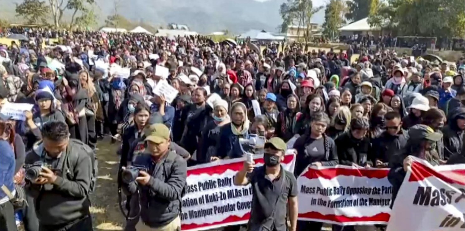 အိန္ဒိယနိုင်ငံ၊ မဏိပူရပြည်နယ်ရှိ တောင်တန်းဒေသ ခရိုင်များတွင် ဖေဖော်ဝါရီ ၆ ရက်က ဆန္ဒပြပွဲများ ဖြစ်ပွားခဲ့ပြီး ပြည်နယ်အစိုးရအဖွဲ့တွင် ကူကီး-ဇို (Kuki-Zo) မျိုးနွယ်စုမှ လွှတ်တော်ကိုယ်စားလှယ် ၃ ဦး ပါဝင်နေမှုကို ထောင်နှင့်ချီသည့် ဆန္ဒပြသူများက ကန့်ကွက်ခဲ့ကြကြောင်း India Today သတင်းဝက်ဘ်ဆိုက်၌ ဖော်ပြခဲ့သည်။