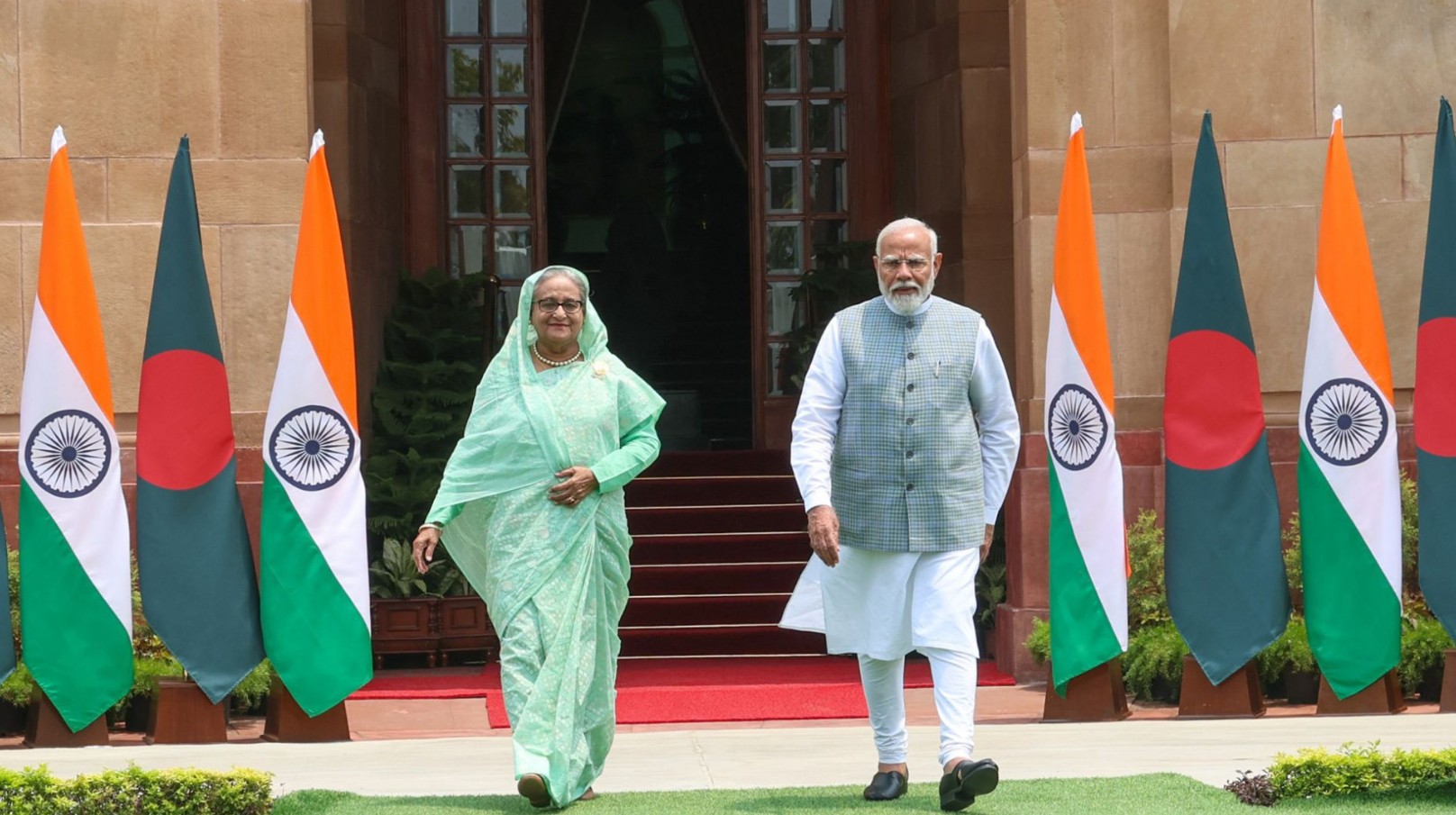 အိန္ဒိယဝန်ကြီးချုပ် မိုဒီနဲ့ ဘင်္ဂလားဒေ့ရှ်ဝန်ကြီးချုပ်ဟောင် ရှိတ်ဟာဆီနာကို တွေ့ရစဉ်