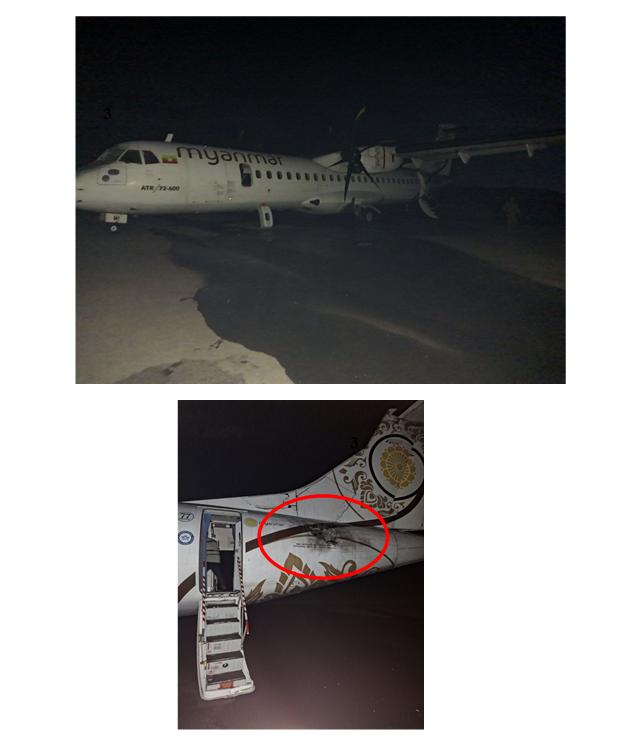 အဆိုပါ တိုက်ခိုက်မှုကြောင့် လေယာဉ်၏ ခေါင်းပိုင်း၊ ကိုယ်ထည် အလယ်ပိုင်းနှင့် နောက်မီးပိုင်းတို့တွင် ဗုံးစ ထိမှန်၍ အနည်းငယ် ပျက်စီးခဲ့ကြောင်း၊ လေယာဉ်ပေါ်ရှိ ခရီးသည်များ သေဆုံး၊ ဒဏ်ရာရရှိမှုမရှိကြောင်း နေပြည်တော်က သတင်းထုတ်ပြန်ခဲ့သည်။