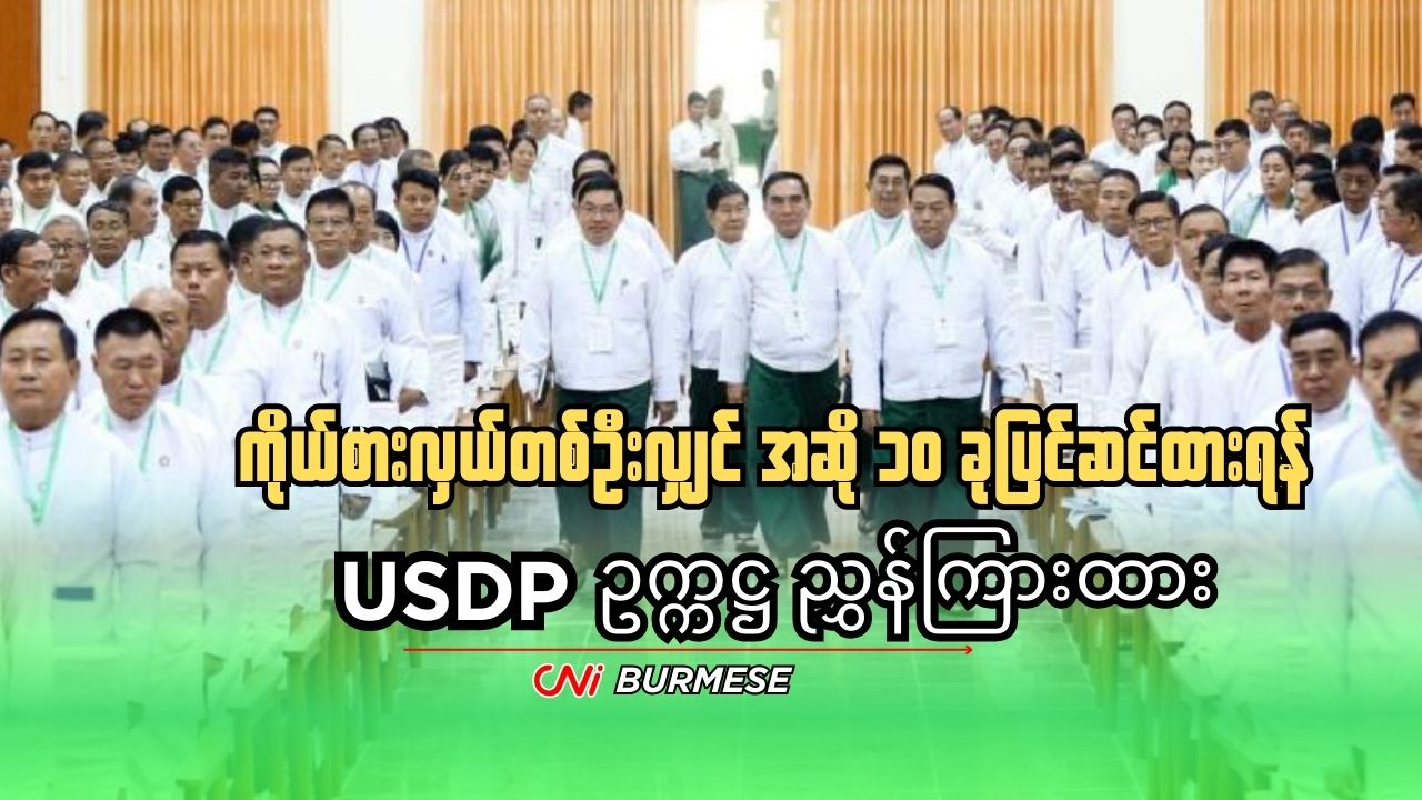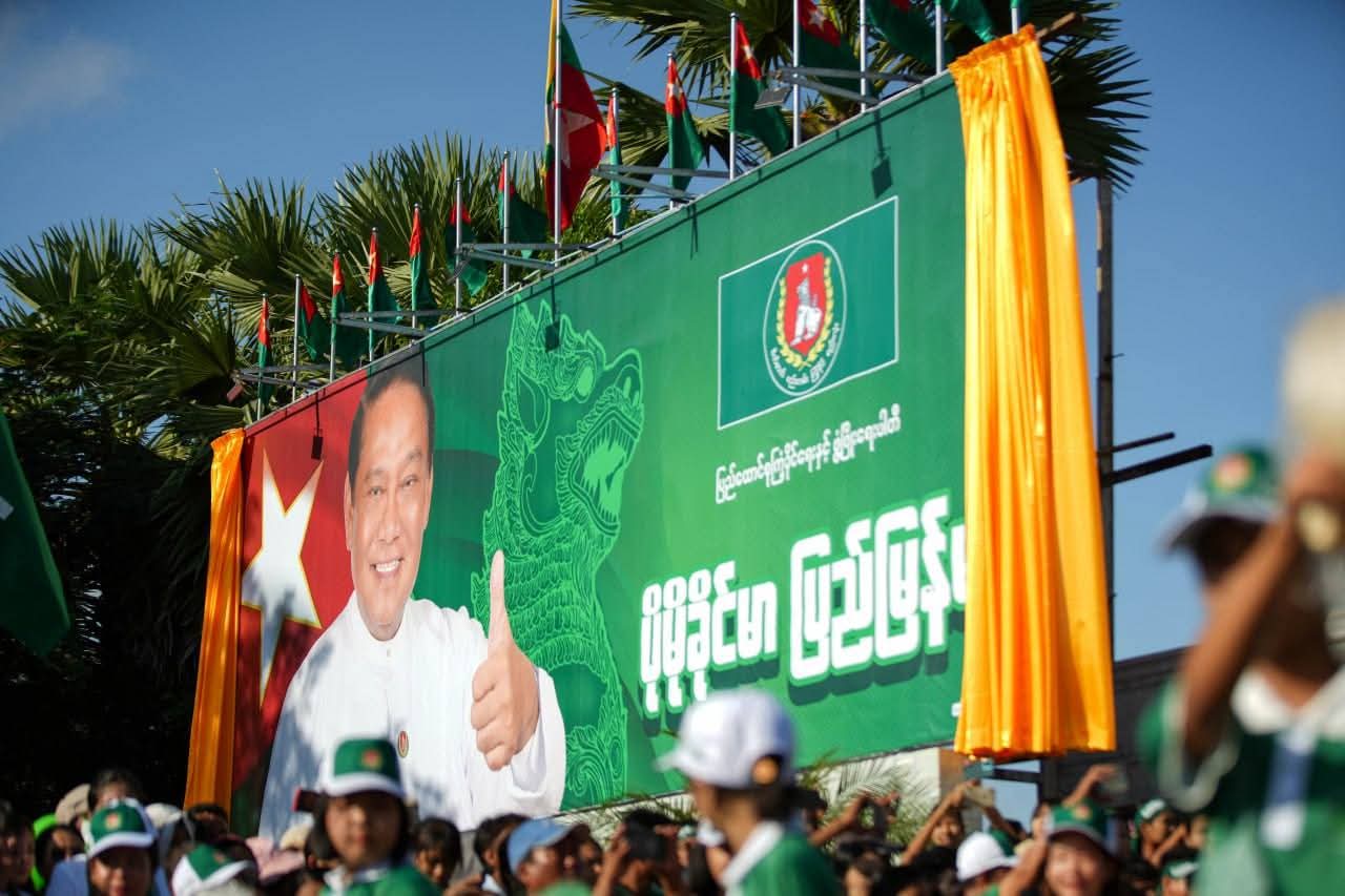 USDP ပါတီဆိုင်းဘုတ်ကို တွေ့ရစဉ်