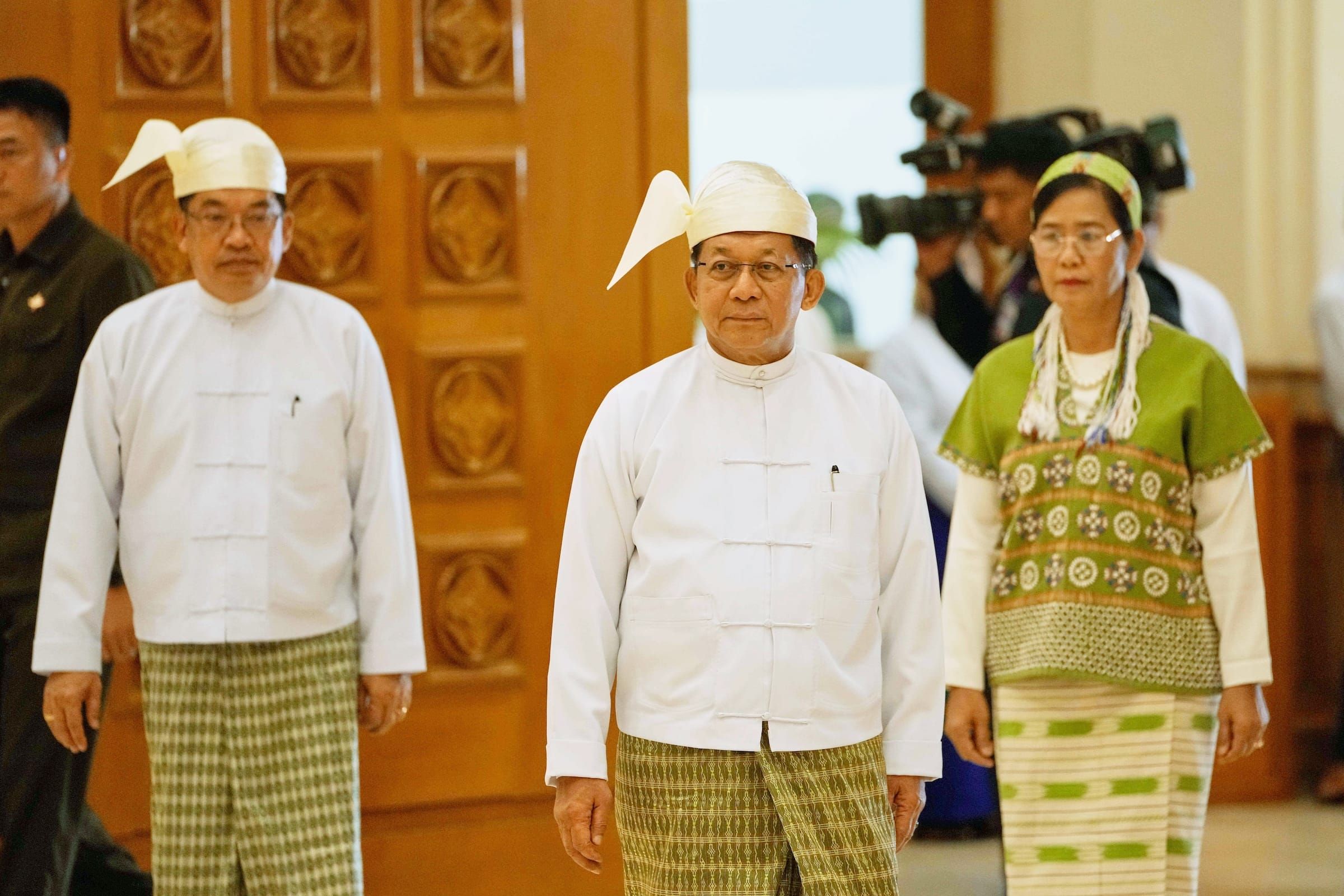 သမ္မတ ဦးမင်းအောင်လှိုင် ဦးဆောင်တဲ့ အကြီးအကဲ သုံးဦးကို တွေ့ရစဉ်