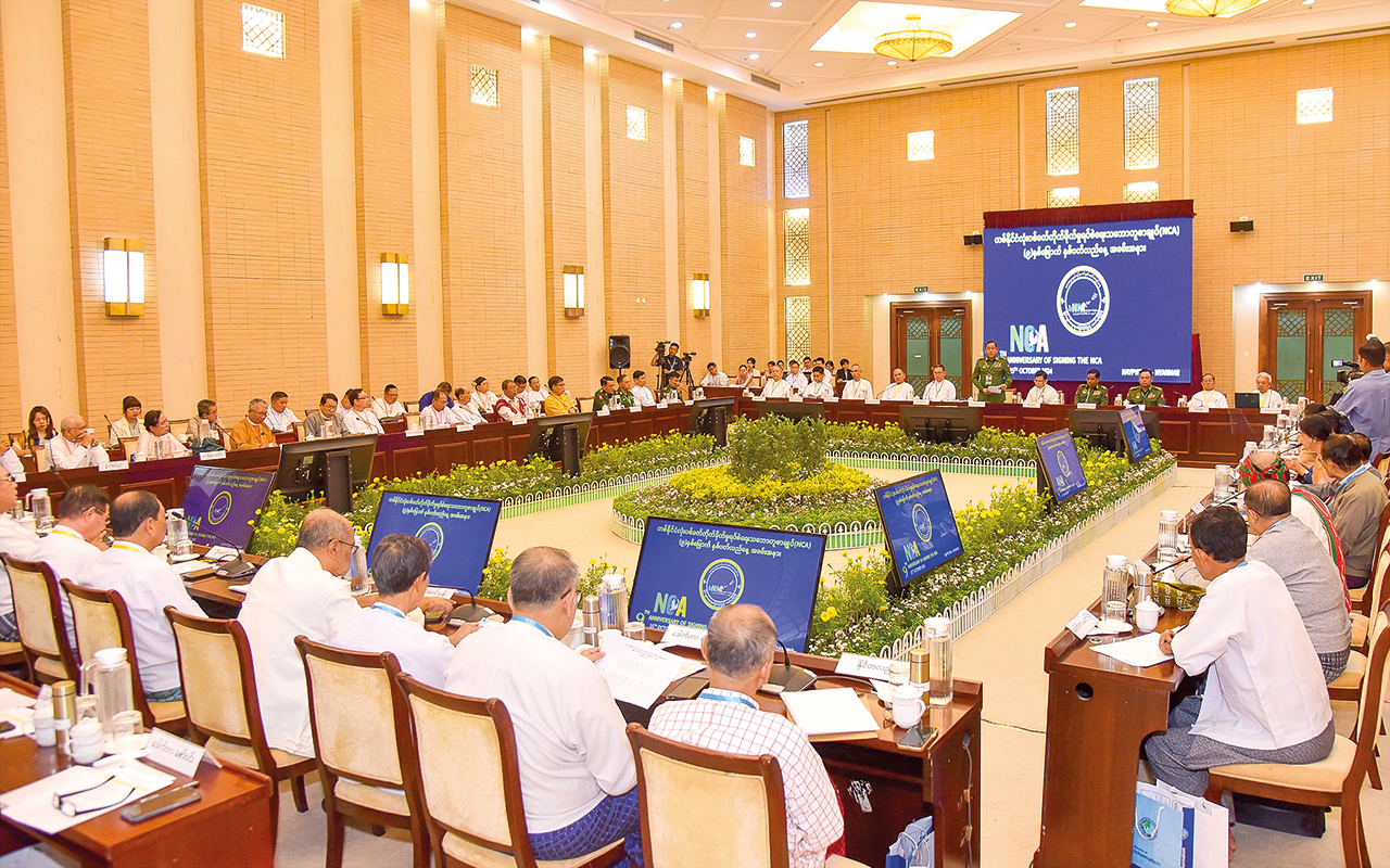 NCA နှစ်ပတ်လည် အခမ်းအနားမှာ ငြိမ်းချမ်းရေးစကားပြောနေကြစဉ်